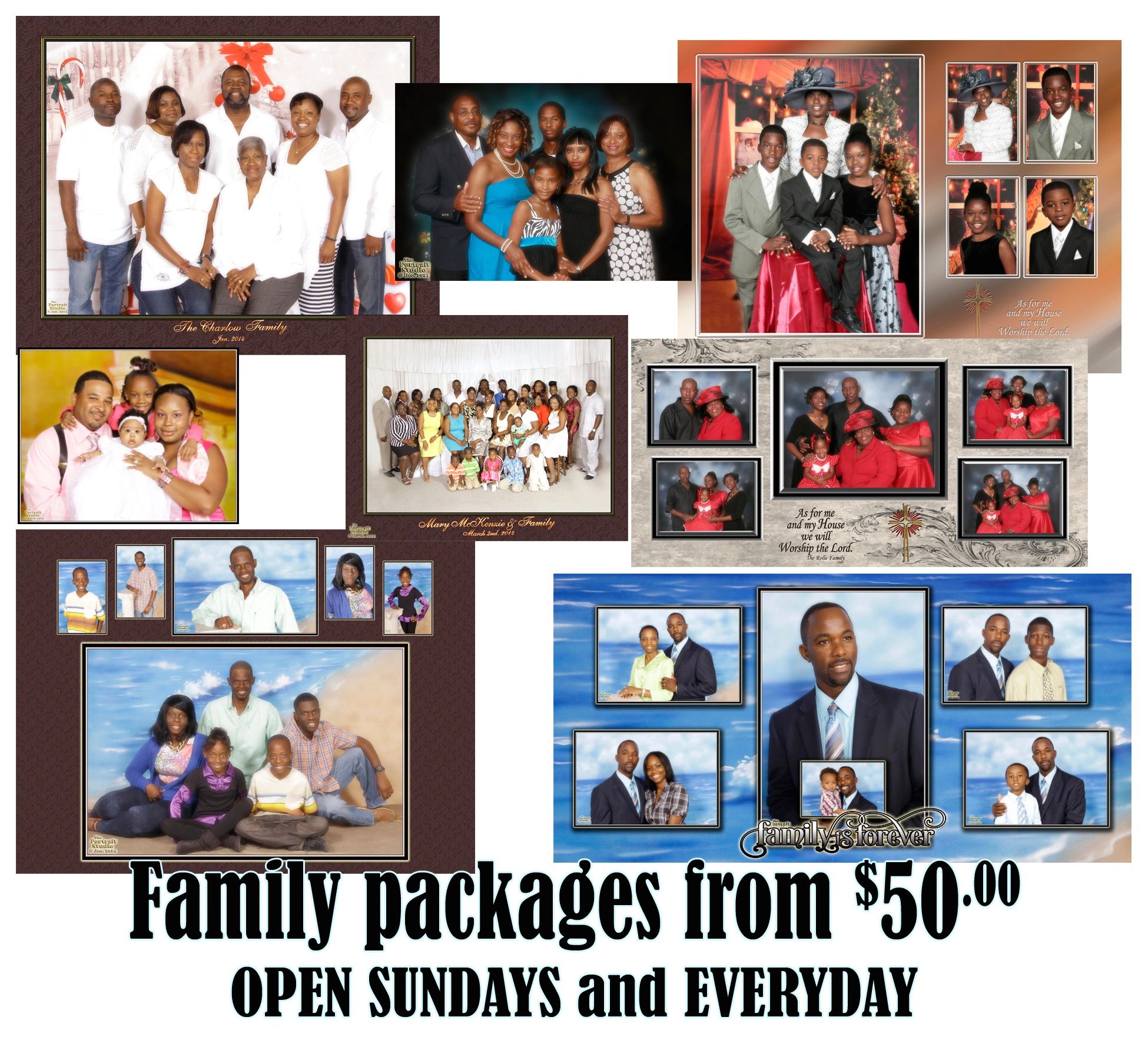 members, extended family, friends and the world to see. No matter the size from three people in size to 63, we've got you covered. Choose from our variety of backgrounds, let our photographers skilfully pose you to reflect the love that you have for one another. After your portrait session is through we will show you the photos on our computers and then you can decide on whichever photographs that you would like. Please call 322-3413 if you have any questions. Appointment preffered, walk-ins always welcome. Open Sundays and Everyday from 8am to 7pm. Just to serve you!